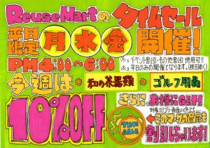 タイムセール対象商品が10%OFFになるお得な2時間です。