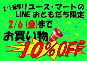 1)「ライン友達限定特典!今週は、全品10%引きになります」